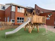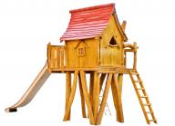 Deze fantasierijke heksenboomhut met glijbaan geeft kinderen extra veel speelplezier. De boomhut staat op palen en is uitdagend te beklimmen met ladder en een net. Eenmaal boven vinden de kleine avonturiers een originele boomhut om te fantaseren en te spelen.
